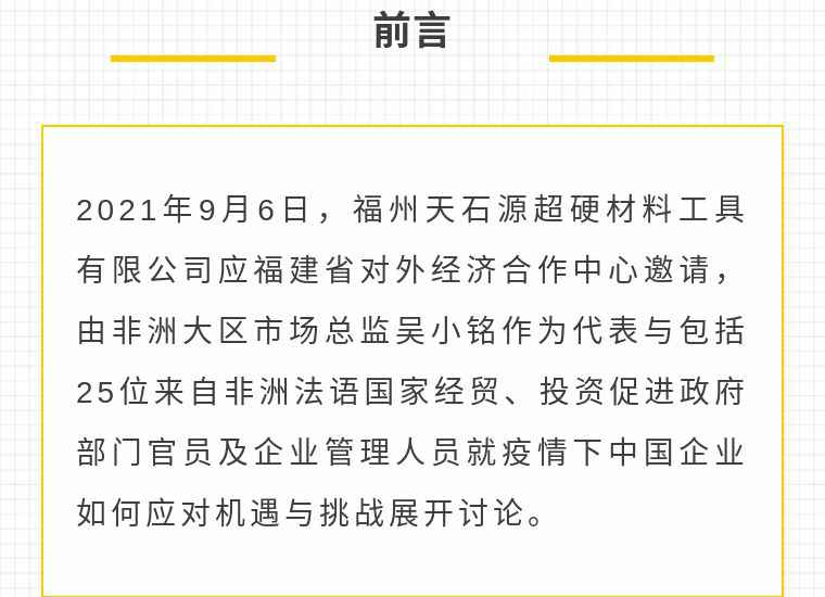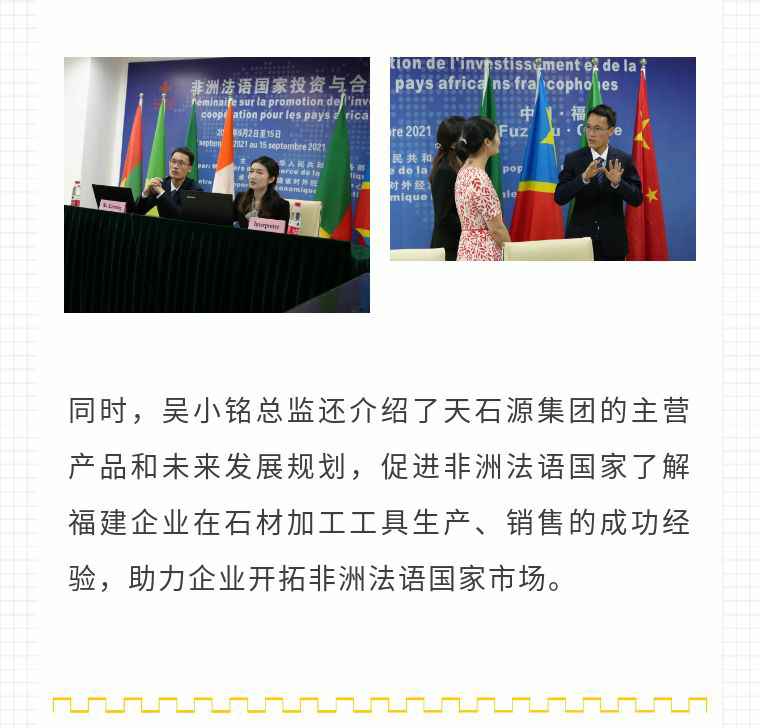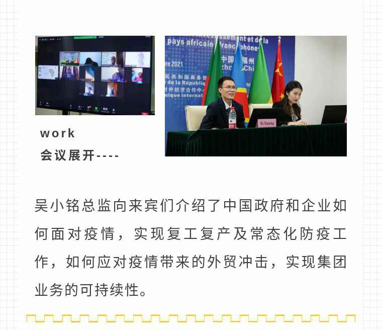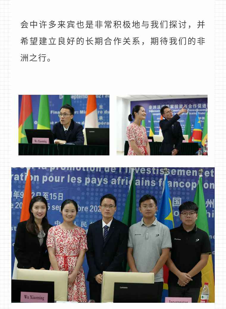 2021年9月6日,MK·体育-MK(中国)一站式服务官方网站应福建省对外经济合作中心邀请,由非洲大区市场总监吴小铭作为代表与包括25位来自非洲法语国家经贸、投资促进政府部门官员及企业管理人员就疫情下中国企业如何应对机遇与挑战展开讨论。